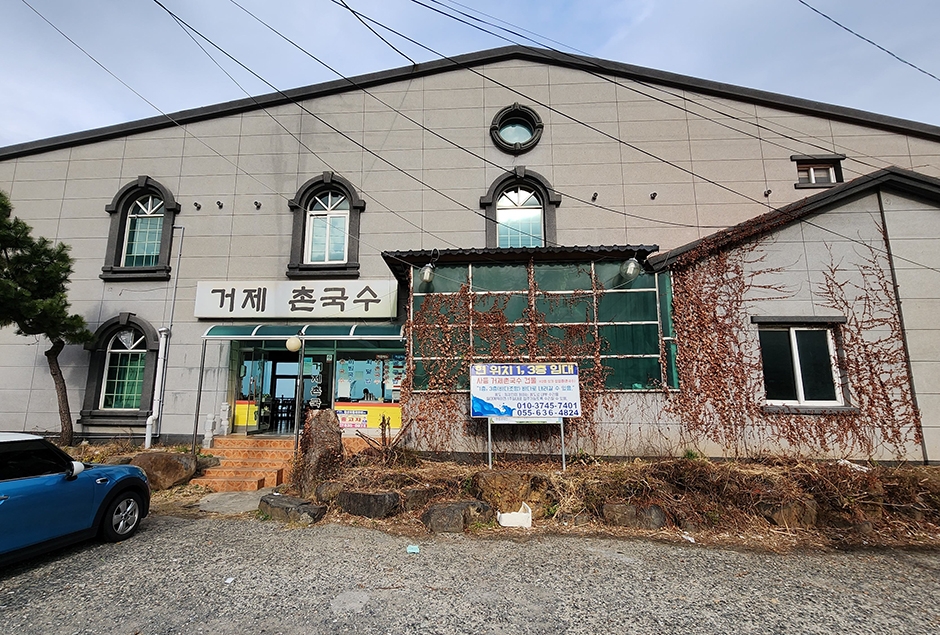 거제에서 통영 가는 방향 사등에서 가조도 가는 길목 대로변에 있는 거제촌국수은 바다가 보이는 오션뷰 국수집이다. 메인 메뉴인 촌국수는 따뜻한 것과 차가운 것이 있는데 잔치국수와 우동 국물의 중간 맛이다. 계란지단과 어묵을 채 썰어 듬뿍 올린 고명은 쫄깃한 국수와 같이 먹는 맛이 일품이다. 언제 먹어도 질리지 않는 국수 요리를 다양한 메뉴로 맛볼 수 있다. 실내에 넓은 테이블들이 많지만, 점심시간마다 만석이라 조금 늦게 오면 평일에도 대기를 해야 한다. 가게 앞 대로변에 주차를 할 수 있는 공간이 있으며 계도어촌체험마을과 노을이 물드는 언덕 등이 인접해 있어 함께 둘러보기 좋다.