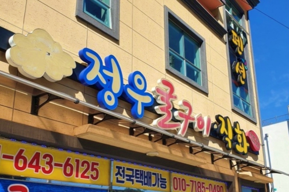 정우 굴구이는 바람이 차가워지는 10월 중순부터 3월 말까지만 운영하는데, 제철에만 맛볼 수 있는 굴을 재료로 하는 굴 전문점이다. 5,000㎡가 넘는 굴 양식장을 직접 운영해 매일 굴을 수확해 신선함이 뛰어나다. 깨끗하게 세척한 굴을 직화로 구워 먹는 굴구이, 굴 향 가득 품고 바싹한 식감을 자랑하는 굴파전, 초장에 버무려 매콤 새콤한 굴회무침, 시원한 굴라면, 든든한 한 끼 굴돌솥밥 등 굴로 만든 음식들이 다양하게 준비되어 있다. 방문객이 가장 많이 찾는 굴구이는 직화로 구운 굴을 왼손에 목장갑, 오른손의 나이프를 사용해 먹으면 되는데, 통통하게 살이 오른 굴을 초장에 찍어 먹으면 쫄깃한 겉과 부드러운 속을 같이 음미할 수 있어 먹는 재미와 행복을 같이 느낄 수 있다.