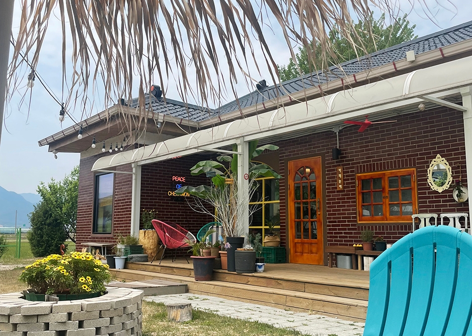철원 장흥리 은하수다리 근처에 위치한 카페이다. 철원의 특산품인 오대쌀을 이용해서 만든 커피와 글루텐프리 디저트를 판매하고 있다. 주택을 개조해서 만든 느낌의 카페와 잔디 정원은 화려하지는 않지만 포근하고 정겨운 느낌이다. 카페 뒤편의 넓은 통유리를 통해서 이름에 걸맞게 넓은 논밭이 보인다. 철원 쌀을 블랜딩하여 고소하고 달콤한 논에라떼와 철원 수수쌀로 만든 크림이 올라간 수수크림라떼가 대표 메뉴이다.