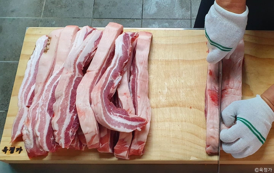 육정가 입구에는 고기가 담긴 수조가 있다. 생경한 이 모습은 고기를 숙성시키고 있는 것이라고 한다. 식당 앞에서 대기하는 사람들을 위한 고객서비스로 기다린 시간별로 음료수, 고기 1인분 등 서비스도 준비되어 있다. 고기는 직원들이 직접 구워주기 때문에 편안하게 기다리며 먹을 준비만 하면 된다. 부드럽고 담백한 육즙이 입안에서 터지는 육즙 꽃목살이 대표 메뉴다. 상추와 쌈장으로 푸짐하게 한입 가득 먹는 것도 좋지만, 소금과 고추냉이만 찍어서 육즙을 느끼며 먹는 것도 추천하는 방법이다.