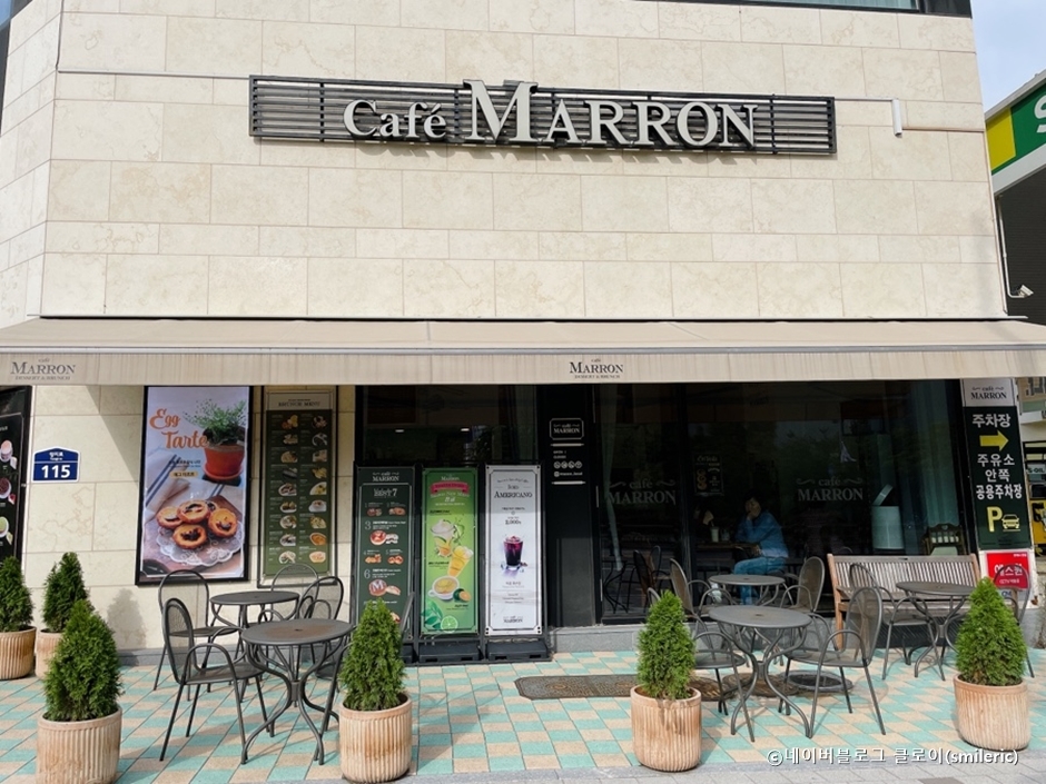 마론은 부천 옥길동 범박터널 근처에 있는 브런치 카페이다. 2층 단독건물로 매장 뒤편에 있는 자동차 정비소 옆 주차장을 이용하면 된다. 층고가 높고 깔끔한 1층은 카운터와 베이커리 진열장 및 조리 공간이 대부분이며, 2층에 실내와 야외 테이블이 여유롭게 있다. 이 카페는 30년이 넘은 장인이 직접 만드는 수제 디저트 전문점으로, 케이크를 비롯한 다양한 베이커리 메뉴가 있다. 커피, 주스, 티 등의 음료 메뉴가 많고 수프, 파스타, 샐러드, 파니니 등의 브런치 메뉴도 있다. 2층 좌석을 이용하는 고객을 위해 덤웨이터라는 기계가 설치되어 있어 음식을 들고 계단을 오르내리지 않아도 되며 사용법은 기계 위에 자세히 적혀 있다.