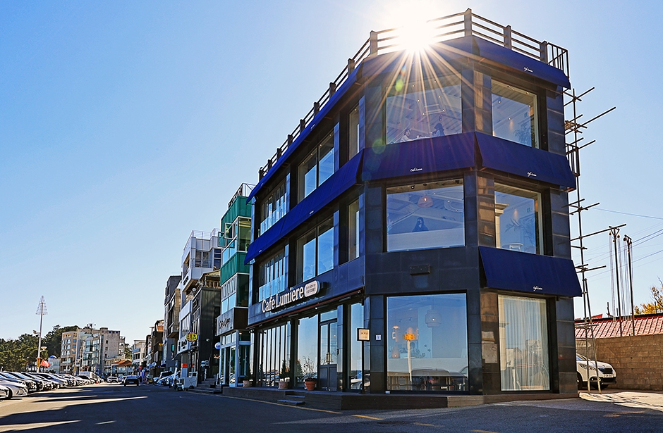 카페 뤼미에르는 일상을 풍경이 되게 하자는 모토를 가진 안목 커피 거리에 위치한 카페이다. 블루리본 서베이를 받은 카페 중 하나이다. 유럽풍의 우아하면서도 세심한 실내와 전면이 창으로, 편안하게 안목해변을 즐길 수 있는 것이 자랑거리이다. 뷰만 멋진 것은 아니고 다양한 디저트와 간단한 식사류, 다양한 차까지 있어, 일상에 지친 이들에게 여유와 휴식을 주는 곳이다. 시그니처 라떼들은 이쁘면서도 맛있어, 인스타그램에 인증샷으로 많이 포스팅된다.