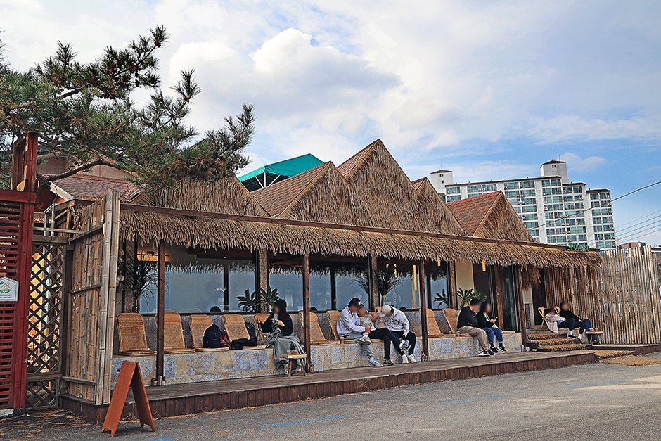 고성의 청간 해변에 위치한 노메드 카페는, 이국적인 건물과 인테리어로 잘 알려진 곳이다. 동남아 발리의 어느 리조트에 멈춘 것 같은 느낌을 주며, 라탄 소품들로 꾸며져 있어서 인증샷 찍기도 좋다. 특히 반쯤 기대듯 앉는 외부 좌석에서 파도 소리와 함께 바다를 바라보면서 물 멍하기 좋다. 특히 라떼류가 맛있고, 다양한 맛의 크로플이 준비되어 있다. 인테리어와 오션뷰 맛집으로 알려져 있지만, 의외로 음료들이 맛있다는 후기가 많다.