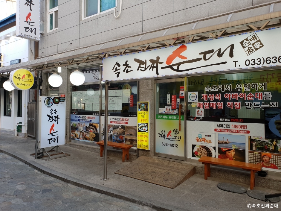 속초진짜순대는 강원도 속초시 속초중앙시장에 있는 순대 전문점이다. 이북에서 내려온 실향민들이 만들었다는 전통의 이북 순대를 포함해서 다양한 순대 음식을 판매하고 있다. 아침부터 식당을 운영하기 때문에 해장하기 위해 방문하는 고객들이 많다. 뜨끈한 순댓국에 밥을 말아 깍두기를 얹어 먹으면 속이 확 풀린다. 저녁에 방문한다면 전골과 같은 식사 메뉴와 곁들임 메뉴로 아바이순대, 오징어순대, 모듬순대 등을 추가해서 한잔을 즐길 수도 있다. 속초중앙시장에 있어 개별 주차장은 없고 공영 주차장을 이용할 수 있다.