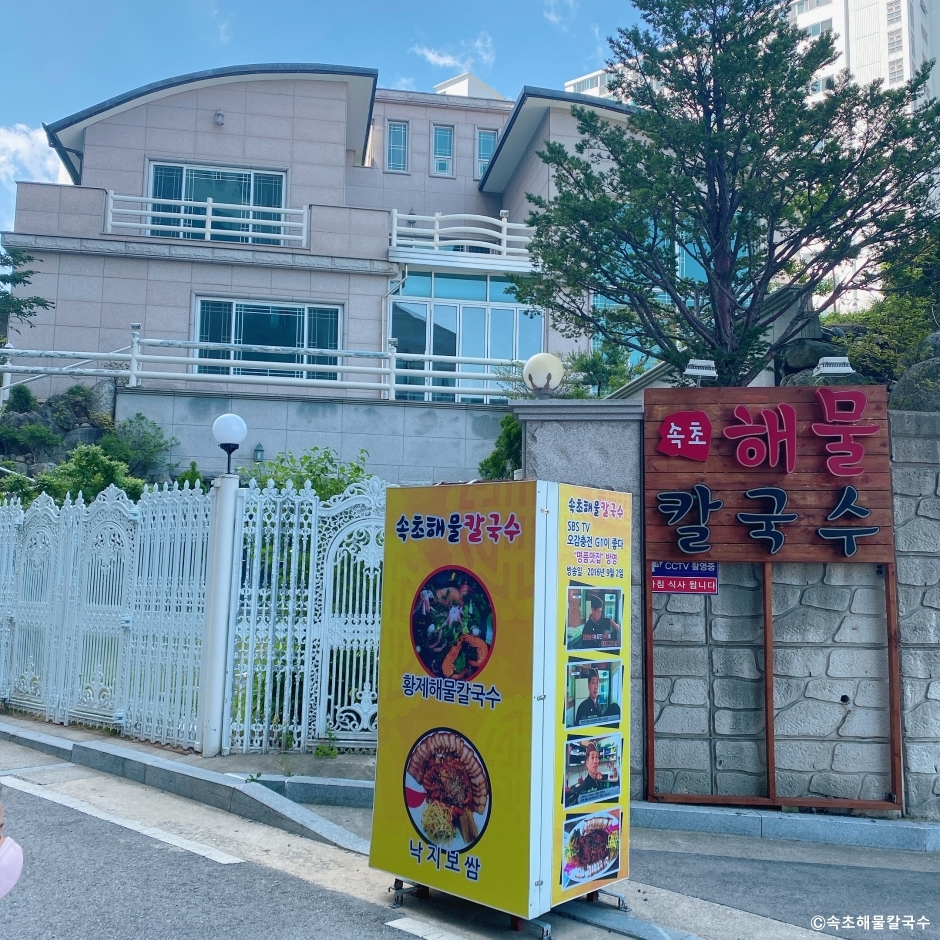속초해물칼국수는 강원도 속초시에 있는 칼국수 보쌈 식당이다. 오징어, 낙지, 홍합, 새우가 잔뜩 들어있는 황제해물칼국수, 푸짐한 해물에 된장, 고추장, 고춧가루를 풀어서 얼큰하고 구수한 육수에 끓여내는 황제해물장칼국수, 바지락이 담뿍 담긴 바지락 칼국수 등이 있다. 칼국수를 먹기 전에 살짝 익혀 먹음직스러운 해물을 먼저 건져 먹은 후 시원하고, 칼칼한 해물 육수에 면을 끓여 먹는다. 이후에 볶음밥을 만들어 먹을 수도 있다. 보쌈은 돼지고기와 낙지볶음, 묵은지 삼합으로 즐기는 음식이다. 잡내도 없고 부드러운 보쌈과 매콤한 낙지볶음, 묵은지와의 삼합이 잘 어울린다. 주차장은 전용 주차장이 있어 이용이 편리하다.