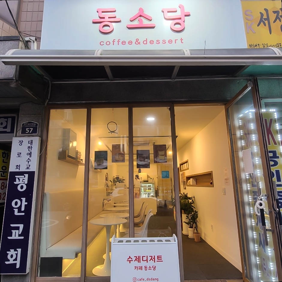 동소당은 평택 서정동에 있는 수제 디저트 카페다. 송탄 거리에 있고 주차 공간은 따로 없다. 내부는 세로로 길게 되어 있는 구조에 화이트와 우드의 조합으로 따듯하고 편안한 분위기를 낸다. 이곳의 인기 메뉴는 수제로 만드는 뚱 타르트인데 에그, 초코, 녹차, 옥수수의 네 가지 맛이 있다. 음료 메뉴는 커피 메뉴들과 허브티, 라테, 티, 에이드, 밀크티 등이 있는데 밀크티와 디저트, 청은 핸드메이드로 만들고 있다. 특히 밀크티는 홍차 잎을 24시간 이상 냉침 숙성시켜 만든 이 집의 시그니처 메뉴다. 피치피치, 아카시아, 얼그레이의 세 가지 맛이 있다. 사장님이 직접 만드는 호두 정과는 보자기 포장하여 판매도 한다.