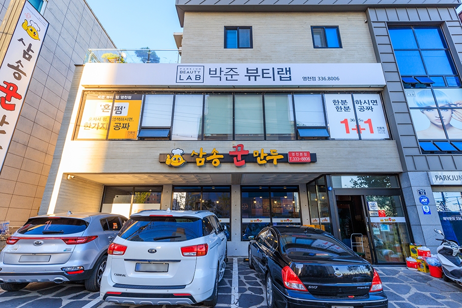 삼송꾼만두 영천본점은 경상북도 영천시 문외동에 있다. 1979년에 영업을 시작한 이곳은 현대적인 외관과 깔끔한 분위기를 연출하는 인테리어가 눈에 띈다. 대표 메뉴는 겉이 바싹하고 속이 꽉 찬 꾼만두다. 찐교스와 김치만두도 많은 사람이 찾는다. 만두를 만드는 모든 과정은 수제로 이루어지며, 단무지와 양념도 마찬가지다. 동영천IC에서 가깝고, 주변에 영천 전투메모리얼 파크 체험권, 동의 참누리원 영천 한의 마을이 있다.