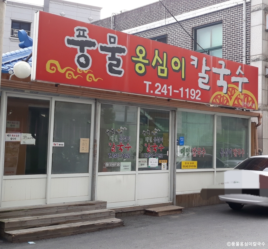 풍물옹심이칼국수는 강원도 춘천시에 있는 강원도 토속 음식점이다. 옹심이만, 메밀칼국수 둘을 섞은 옹심이 칼국수이다. 곁들임으로 메밀만두, 메밀전병, 수수부꾸미가 있다. 여름에는 시원하게 메밀막국수를 즐길 수도 있다. 반찬으로 주는 열무김치와 무말랭이무침도 강원도의 맛 그대로를 지켜내는 집이다. 옹심이나 칼국수를 시키면 작은 그릇에 보리밥을 주는데 이것은 애피타이저다. 열무김치와 무말랭이를 조금 넣어 비벼 먹거나 나중에 옹심이 국물에 말아 먹어도 좋다. 지금은 별미지만 예전에 쌀이 없던 시절에는 귀한 한 끼였을 음식이었으리라. 그래서 그런지 웨이팅이 길어도 기다렸다 먹고 가는 어르신 손님들이 많다. 남춘천역 부근에 있는데 별도 주차 공간은 없다. 주별 골목이나 유료 주차장을 이용해야 한다.