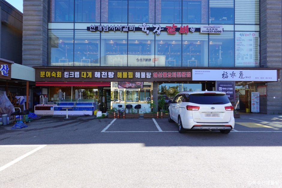 복수산해물탕은 강원도 속초시에 있는 해물 전문점이다. 엑스포 공원 근처에 최근 개업한 식당이다. 신선한 생물만으로 요리하는 식당으로 황제해천탕, 황제해물탕, 황제해물찜이 주요 메뉴이다. 일반 식당과 같은 음식을 원한다면 랍스타찜, 가오리찜, 대게, 킹크랩 등을 맛볼 수도 있다. 속초에서 가장 넓은 매장으로 패밀리실, VIP실, 수조 앞 물멍실, 연인실 등 다양한 형태의 룸이 구비되어 있어 가족 모임을 하거나 사업상의 모임을 하기 좋은 식당이다. 속초 해수욕장, 엑스포타워, 엑스포 잔디공원, 청초호 유원지 등과도 가까운 위치여서 여행을 온 관광객들의 접근성이 좋다. 전용 주차장을 이용할 수 있어 이용이 편리하다.