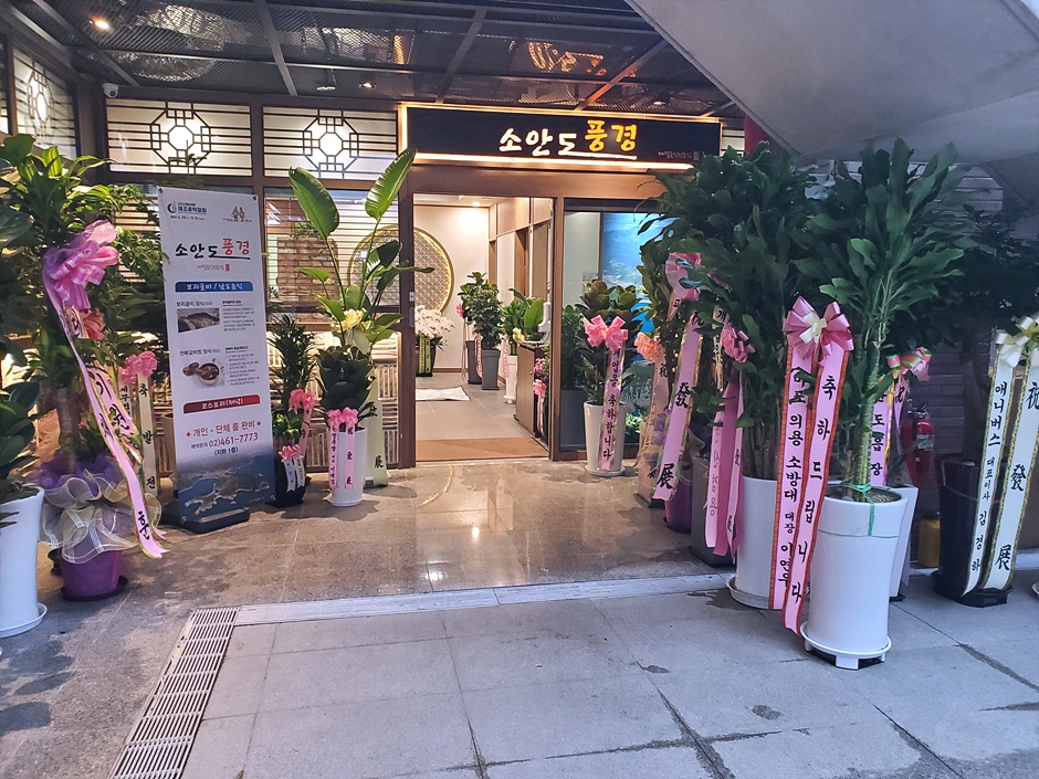 소안도풍경은 서울지하철 2호선 성수역 3번 출구 성수동카페거리 초입에 있다. 자가용 이용 시 주차 식당이 있는 건물에 가능하고 접근성이 좋아 버스나 지하철 등 대중교통을 이용하는 것도 편리하다. 이곳은 모임과 상견례 장소로 좋은 한정식집으로 다양한 형태의 룸과 개방감 좋은 넓은 홀도 있는 남도음식전문점이다. 한옥 분위기의 인테리어가 아늑함을 느끼게 한다. 메뉴로는 보리굴비 정식(점심), 전복갈비찜 정식(점심), 한상차림이 있다. 서울숲이 가까이에 있어 가볍게 산책할 수 있고, 성수동카페거리, 성수동구 테마공원, 뚝섬유원지 등도 근처에 있어 둘러보기에 좋다.