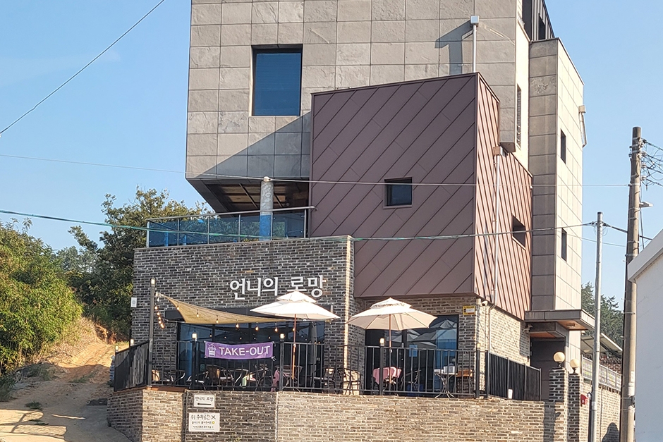 농소 몽돌해변 근처에 있는 언니의로망은 브런치 카페다. 깔끔하고 아늑한 분위기의 실내 공간과 테라스로 이루어져 있으며 전용 주차장이 따로 마련되어 있지 않아 근처 갓길에 주차해야 한다. 근처에 리조트와 해변이 있어 가벼운 식사와 커피를 마시러 오는 사람들이 많다. 대표 메뉴는 샐러드와 베이컨, 소시지, 달걀, 파인애플, 크루아상이 나오는 언니 플레이트이며 음료는 별도로 주문해야 한다. 오후 5시까지만 영업하는 이곳의 브런치 메뉴는 조리 시간이 20분 정도 소요되고, 마지막 주문 가능 시간이 오후 3시 30분까지로 시간을 여유 있게 가지고 방문하는 게 좋다. 거제 여행 추천 코스로 좋은 망봉산 둘레길과 매미성이 가까이 있어 함께 둘러보기 좋다.