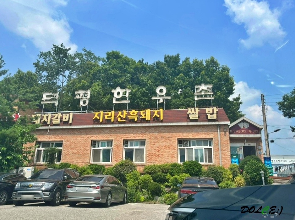 덕평 한우촌은 경기도 이천시 마장면에 있는 고기 전문점이다. 대표 메뉴는 지리산 생흑돼지로 육즙이 많고 껍데기까지 함께 있어 맛이 고소하다. 숯불을 사용하여 고기를 구우니 숯 향까지 입혀진 맛을 즐길 수 있다. 고기뿐 아니라 식사류를 찾는 손님들도 많다. 특히 김치찌개가 인기메뉴인데 생고기가 들어있어 얼큰한 찌개에 구수한 맛을 더해준다. 밑반찬은 10여 가지로 푸짐하고 다양하게 나온다. 두부와 함께 계란말이는 테이블마다 바로바로 만들어 따뜻하게 제공한다. 쌀과 김치는 국내산만 사용하고 있다. 2km 거리에 별빛정원 우주 테마파크, 3km 거리에 롯데프리이엄 아울렛, 6km 이내에 골프장이 많이 있다.