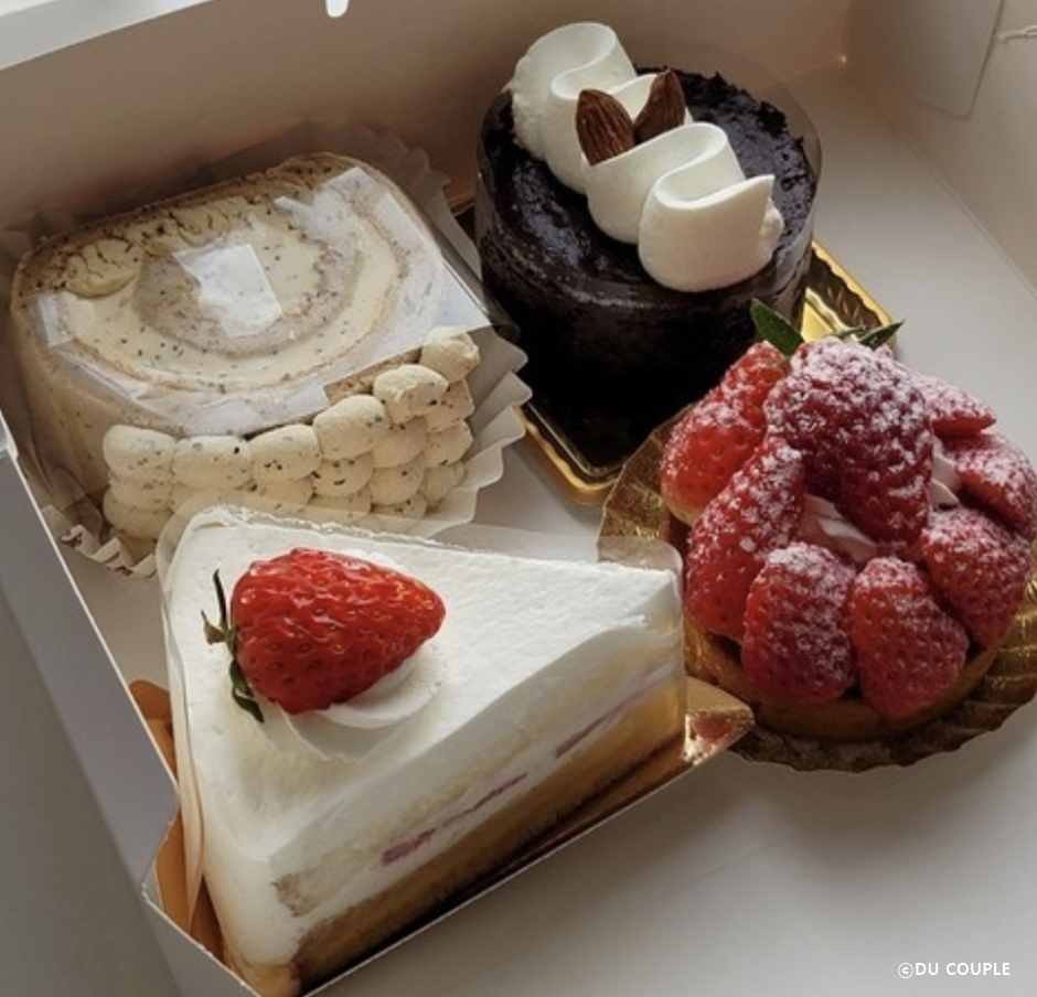 DU COUPLE 는 아주대학교병원 앞에 있는 제과점이다. 아담한 크기의 매장에는 별도의 주차장이 없고 건물 앞 건너편에 주차장을 이용하면 된다. 매장 내부는 계산대 안으로 베이커리 공간이 있고 테이블 없이 포장 판매만 하고 있다. 2013년에 시작한 이곳은 천연 버터와 벨기에산 리얼 초콜릿, 고급 타히티산 바닐라빈과 당도 높은 신선한 과일 등을 이용하여 딸기 크림치즈 타르트, 치즈케이크, 청포도 타르트 등의 케이크와 구움 과자 등의 베이커리를 직접 만들어 판매하고 있다. 이곳의 생크림 케이크는 14시 이후, 얼그레이 시폰, 블랙 포레스트는 15시 이후에 나오고 당일 원하는 케이크 구매가 어려울 수 있어 원하는 케이크를 원하는 날짜에 구매하기 위해서는 예약을 추천한다.