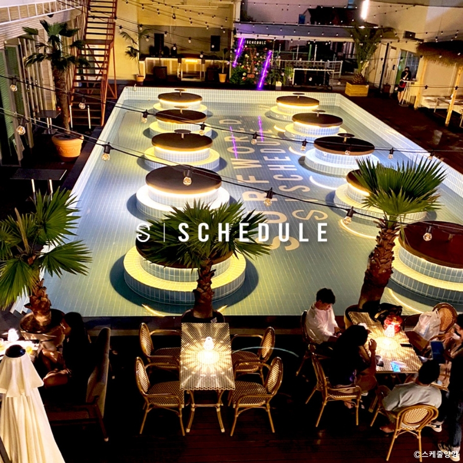 스케줄양양은 강원도 양양군에 있는 복합 문화 공간으로 아일랜드 풀을 갖추고 있다. 죽도 해수욕장과 인구해수욕장 사이에 있다. 양리단길이라고 부르는 곳이다. 양양의 핫플레이스로 양양에서 서핑을 즐기는 사람들의 성지이다. 아일랜드 풀 안에도 자리가 있고 풀 주변에도 자리가 있다. 패스트푸드처럼 직접 주문하고 받아오는 시스템이다. 음식은 모두 일회용기에 담아 준다. 음식도 먹고 맥주도 한잔하고 물총도 쏘며 놀기 좋은 곳이다. 어두워질수록 분위기가 깊어진다. 새벽 1시나 2시까지 영업을 하는 곳이라 밤늦게 방문하는 고객도 많다. 주차는 길가 도로변, 골목을 이용해야 한다.