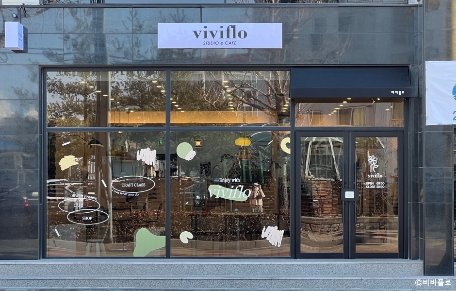 비비플로는 강원도 강릉시에 있는 편집숍 겸 카페이다. 매장에서는 크래프트 제품 만드는 것을 배울 수 있는 원데이 클래스도 운영하고 있다. 워낙 다양한 소품들을 진열하고 있어 매장이 꽤 넓은 편이다. 카페는 자리마다 다른 디자인으로 카페 구경을 하는 것도 방문하는 재미이다. 브랜드 제품도 판매하고 수공예로 만든 다양한 제품들이 있다. 소품, 인테리어 제품, 액세서리를 모두 판매하고 있다. 음료나 디저트 제품의 수준도 높아 고객 만족도가 높고, 반려동물도 데려갈 수 있는 곳이다. 주차는 주변에 할 수 있다.