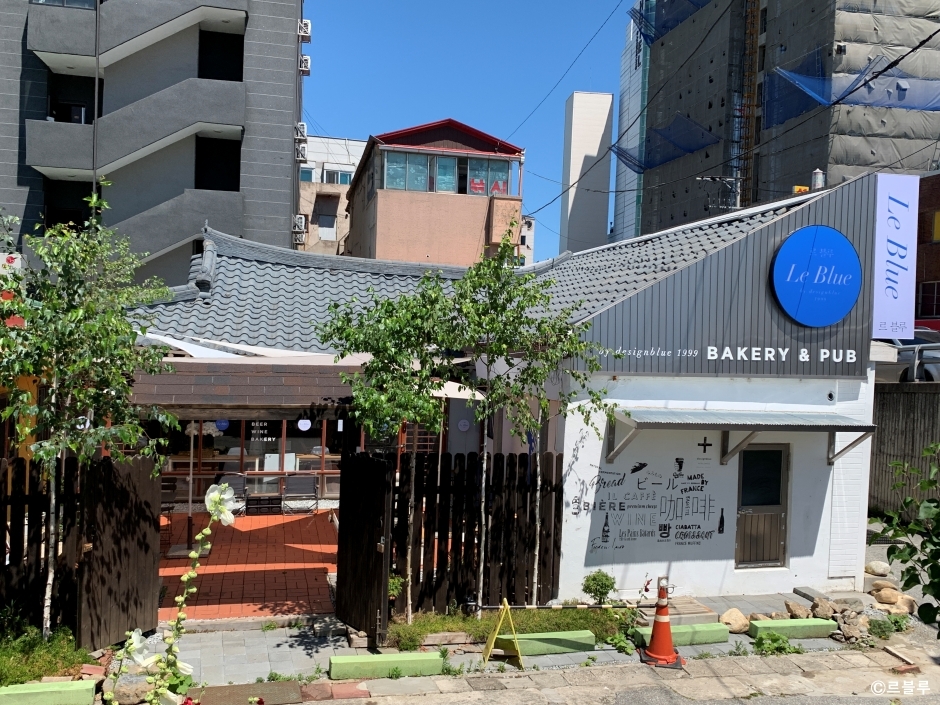 르 블루는 파랑이란 뜻을 가진 베이커리 팝으로 강원도 강릉시 성남동에 있다. 커피와 음료는 기본이고 다양한 베이커리 제품과 수제 샌드위치를 팔고 있다. 더불어 와인과 맥주로 마실 수 있는 한옥 베이커리 팝이다. 분위기 좋은 곳에서 한잔하고 싶을 때 맞춤인 곳으로 오래된 한옥을 현대식으로 개조해서 식당으로도 카페로도 술집으로도 잘 어울린다. 빵을 만드는 모든 재료는 프랑스에서 수입한 유기농 제품을 사용한다. 야외석이 있어 한옥 마당에 앉아 편안함을 느낄 수도 있다. 반려동물과 함께 여행을 왔다면 편하게 동반 입장할 수 있다. 주차는 불가능해 주변 공영주차장을 이용해야 한다.