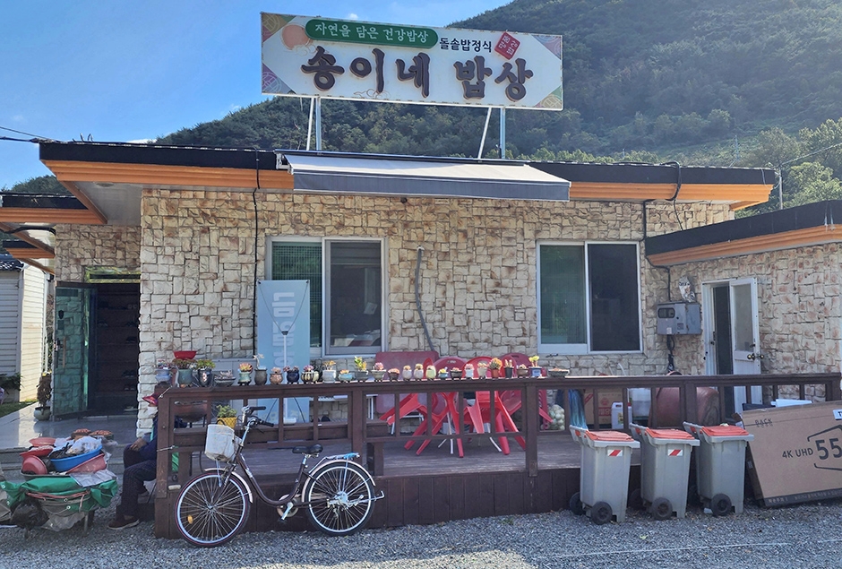 창녕군 부곡면에 있는 송이네밥상은 푸짐한 양과 정갈한 밑반찬이 나오는 한정식 맛집이다. 일반 가정집을 식당으로 개조한 송이네밥상은 신발을 벗고 들어가야 한다. 깨끗한 내부는 입식과 좌식 테이블로 이루어져 있다. 송이네밥상 대표 메뉴는 돌솥밥정식으로 잡채, 제육볶음, 생선구이가 기본으로 나오고, 호박, 숙주, 고사리 등 다양한 나물무침과 묵사발, 샐러드, 된장찌개 등이 한 상 가득 나온다. 특별 메뉴 수육은 1시간 전에 주문받아 방문 전 예약해야 먹을 수 있다. 다채로운 밑반찬과 푸짐한 상차림으로 편안하게 식사하기 좋은 송이네밥상은 재료 소진 및 기타 사정으로 영업시간이 변동될 수도 있다.