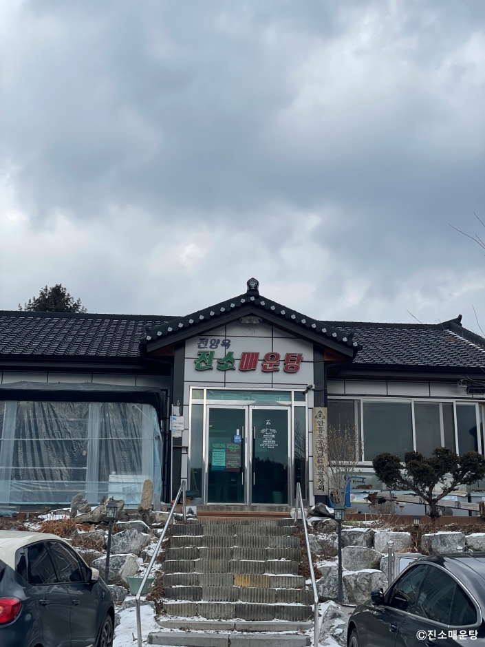 진소매운탕은 강원도 횡성군에 있는 매운탕과 어탕 칼국수 전문점이다. 주천강변에 있어 직접 잡은 물고기로 매운탕과 어탕, 강원도 토속 음식인 감자부침, 도토리묵무침을 곁들여 먹을 수도 있다. 어탕 칼국수는 매콤하고 구수한 맛이 생선 살을 잘 익혀 육수를 낸 것이 느껴진다. 어탕 칼국수에 들어가는 면은 주문받는 즉시 뽑기 때문에 쫄깃하고 구수하다. 밥은 직접 지은 쌀로 지은 것인데 셀프바에 준비되어 있다. 밥을 무제한으로 제공하고 있어 특별한 주문이 없으면 면을 많이 주지 않으니 면을 좋아한다면 미리 많이 달라고 요청해야 한다. 메기매운탕, 잡고기 매운탕도 시원하고 얼큰한 국물이 아주 좋다. 넓은 전용 주차장이 있어 이용이 편리하다.