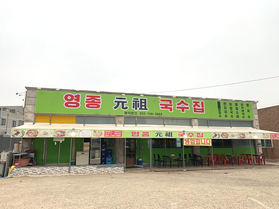 영종원조국수는 인천 중구 운중로 인천중구제2청사 인근에 있다. 이 식당은 1층 건물로 앞에는 널은 주차공간이 마련되어 있다. 건물 1층 입구에는 김치냉국수 달인으로 방송 출연한 인증 명패가 걸려 있다. 이곳은 국수 전문점답게 김치냉국수, 김치온국수, 비빔국수, 옛날칼국수 등 다양하게 있다. 특히 김치냉국수가 유명하다. 곱빼기는 추가요금없이 요청이 가능해 국수를 좋아하는 사람에게는 가성비가 좋다. 인근에 있는 영종 둘레길 2코스(치유 하늘길)와 영종하늘도시 근린공원, 10분 거리에 있는 예단포선착장, 예단포둘레길 등도 함께 둘러보면 좋다.
