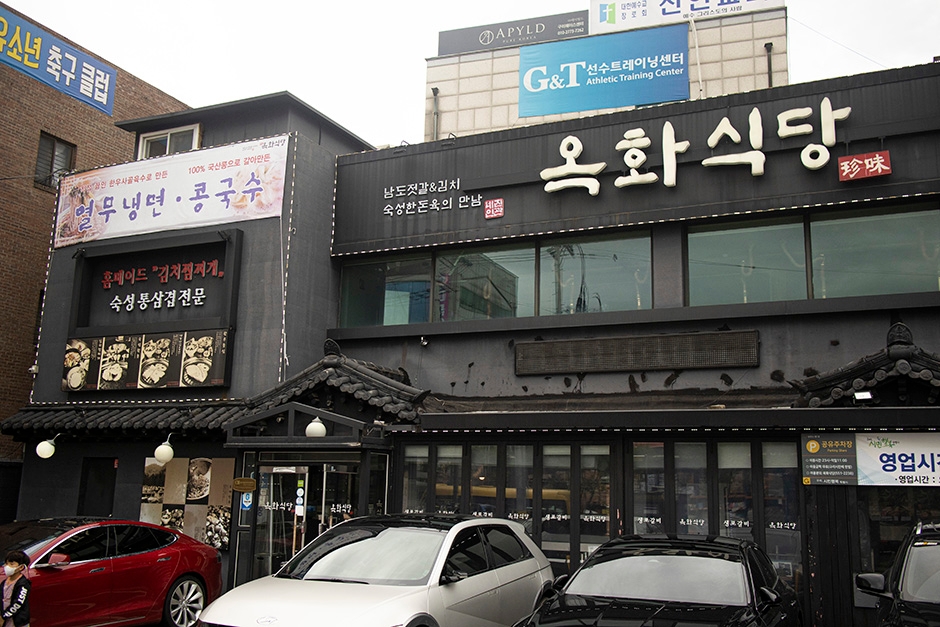 옥화식당은 경기도 구리시 수택동에 있는 남도식 한돈 한우구이 전문점이다. 식당 건물 바로 앞에 주차장이 있어 편리하게 이용할 수 있다. 실내는 깔끔한 테이블에 구리색 연기 흡입 통이 있어 쾌적하게 고기를 구울 수 있다. 대표 메뉴는 14일간 숙성되어 식감이 부드럽고 쫄깃한 한돈과 한우구이이다. 다양한 쌈 채소에 고추냉이, 젓갈을 얹어 잘 구워진 고기랑 싸먹는 재미가 있다. 또한 당일 도축한 한우로만 만 만든 한우육회도 한정 수량으로 맛볼 수 있다. 근처 가 볼 만한 곳으로는 검배근린공원, 원촌공원 등이 있다.