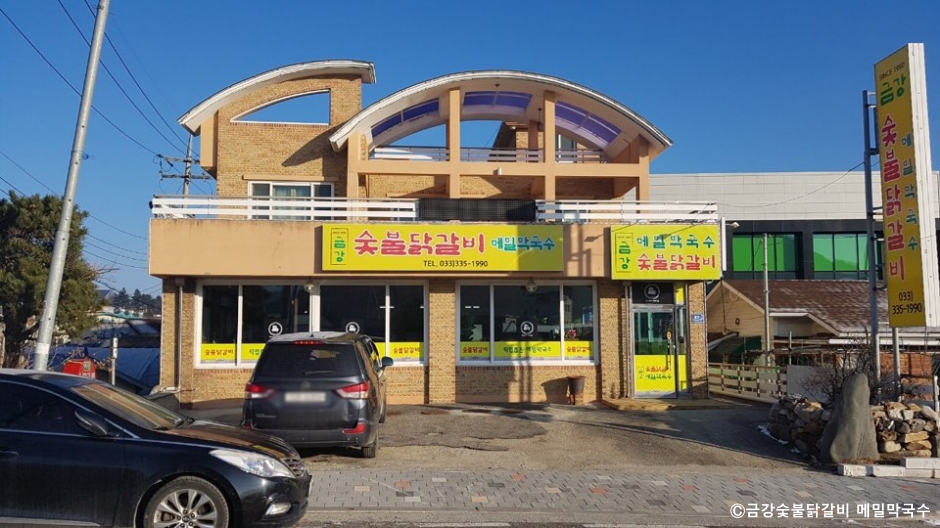 금강숯불닭갈비 메밀막국수는 강원도 평창군 대관령에 있는 닭갈비 막국수 전문점이다. 매콤한 양념의 숯불 양념 닭갈비나 짭조름한 간장양념 닭갈비를 골라 주문할 수 있다. 치즈를 좋아한다면 퐁뒤 치즈를 시켜 양념 닭갈비를 찍어 먹을 수도 있다. 닭갈비를 모두 먹은 후에는 막국수로 식사할 수 있다. 곁들임으로 먹을 수 있는 메밀전병, 메밀 찐만두 등이 있다. 오롯이 손맛 하나로 맛을 내는 막국수는 조미료를 전혀 첨가하지 않았을 뿐만 아니라, HACCP 인증한 식품이며 국내산 청정육을 사용하고 있다. 오래전부터 맛집으로 소문난 식당이어서 대기할 수도 있다. 매장 앞에 전용 주차장이 있어 편하게 주차할 수 있다.