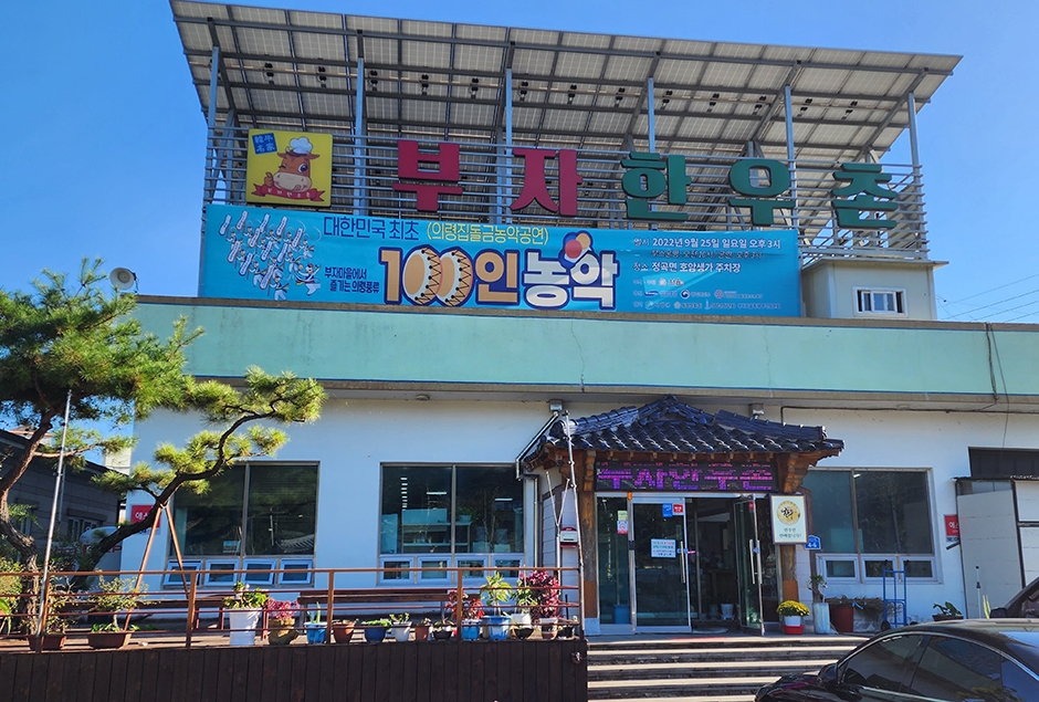한우가 맛있기로 소문난 의령에는 한우구이 전문점이 많다. 부자한우촌은 식육판매업도 함께 운영 중으로 품질 좋은 한우를 먹을 수 있어 의령 한우 맛집으로 알려져 있다. 큰 규모의 식당 내부는 단체석과 개별 룸이 있어 가족 식사, 회식, 모임 등을 하기 좋은 곳이다. 신발을 벗고 들어가는 부자한우촌은 가게 입구 신발 사물함이 구비되어 있다. 다양한 부위의 한우가 나오는 부자촌 모듬과 부자촌 스페셜이 이곳 대표 메뉴이다. 또 육회와 전골도 인기 메뉴로 많이 찾는다. 냉면과 곰탕, 곰탕 국수는 계절 메뉴로 판매하고 있다. 가게 안 정육점도 운영하여 조금 더 저렴한 가격으로 한우를 구매할 수 있다. 근처 여행 코스로 좋은 호암 이병철 생가도 있어 함께 둘러보기 좋다.