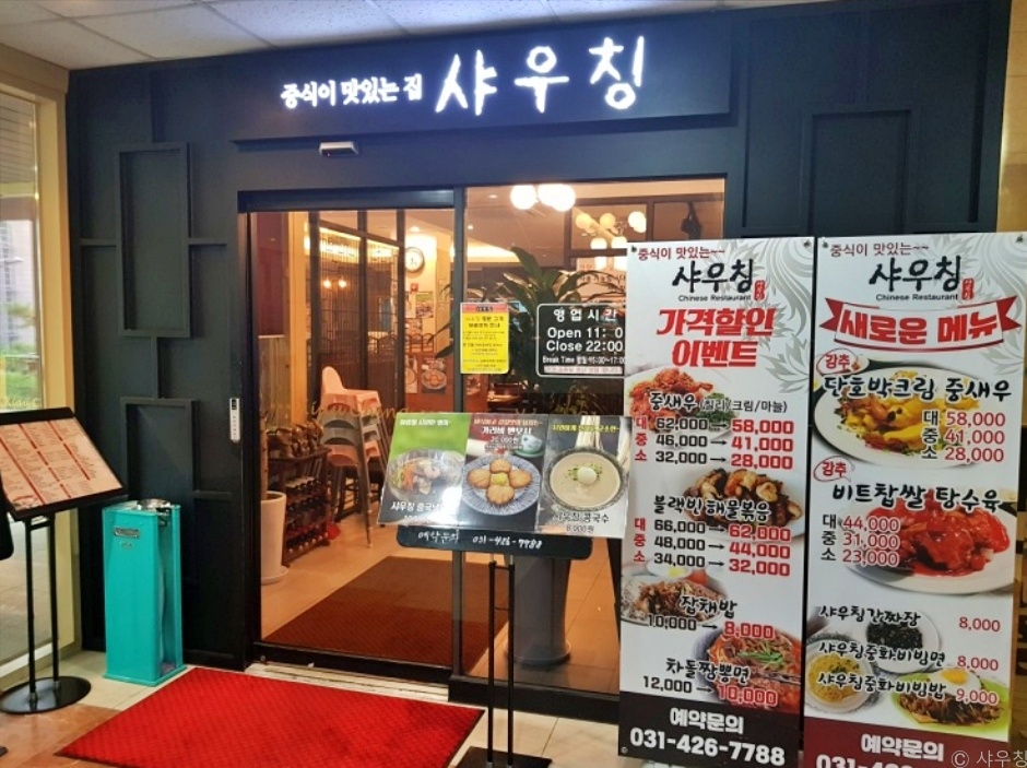 샤우칭은 경기도 안양시 동안구 관양동에 있는 중식당이다. 매장은 좌석 사이에 칸막이가 있어 분리된 공간에서 식사를 할 수 있다. 매장 안쪽에는 넓은 테이블들이 있어서 단체 회식 자리로도 이용된다. 열린 주방으로 운영하고 있다. 대표 메뉴인 중화비빔밥은 갖가지 채소와 다양한 해산물들이 푸짐하게 들어있어 양도 많고 맛이 있다. 짜장면은 면발이 쫄깃하고 면과 소스가 따로 제공되며 소스에서 불향을 맛볼 수 있다. 짬뽕은 해산물과 야채가 푸짐하고 국물이 얼큰하고 시원하다. 찹쌀 탕수육이 인기인데 육질이 부드러운 고기에 쫀득한 찹쌀옷을 입혀 바싹하게 튀겨내어 식감이 좋고 새콤달콤한 소스까지 맛이 좋다. 점심에는 가성비 좋은 코스요리를 먹을 수 있는 점심정식이 있다. 샤우칭은 식전에 게살스프가 전채요리로 나와 입맛을 돋워 준다. 후식으로 나오는 샤베트도 식사를 마무리하기에 좋다. 동편마을 카페거리에서 차 한잔과 산책하기 좋고, 2km 거리에 평촌중앙공원, 4km 거리에 백운호수가 있다.