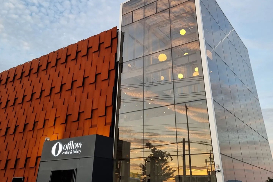 낙동강을 바라보며 향긋한 커피와 다양한 베이커리를 즐길 수 있는 카페 오플로우는 지하와 1층, 2층, 루프탑으로 이루어져 있다. 지하공간은 자갈과 식물로 구성되어 있어서 안전사고 예방을 위해 어린이 제한 구역으로 운영된다. 루프탑에서 낙동강의 멋진 풍경을 바라보며 커피를 즐길 수 있다. 이곳의 모든 빵은 당일 아침 생산해서 당일 판매를 원칙으로 한다. 빵 종류도 다양하고 커피와 에이드, 티 종류도 다양하게 마련되어 있다. 브런치 메뉴는 없지만, 피자를 판매한다. 주차는 건물 앞과 뒤에 모두 주차할 수 있다. 인근에 낙동강 둔치 공원이 있어 둘러보기 좋다.