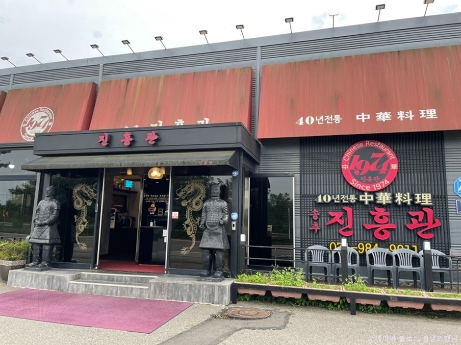 진흥관 김포점은 김포한강신도시에서 그리 멀지 않은 곳에 있는 40년 전통의 중국 식당이다. 넓은 주차장이 있는 컨테이너 모양의 검은색 건물 입구에 진시황릉의 병용이 세워져 있어 중국 식당 분위기가 물씬 난다. 내부로 들어서면 홀과 룸으로 구성되어 있어 방해받지 않고 각종 모임을 하기에 적합하다. 특히 이곳의 탕수육은 등심을 돈가스 수준의 크기로 잘라 통째로 튀겨 새콤달콤한 소스와 곁들여 먹는 맛이 일품이다. 또한 짬뽕은 야채와 풍성한 해물이 가득하고, 국물은 진하고 얼큰해서 인기가 많다.