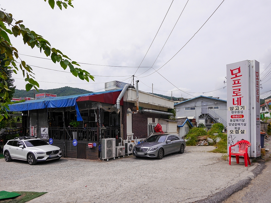 모프로네는 경강선 삼동역 근처에 있는 숯불고기 전문점이다. 오래된 가정집을 개조한 이 식당은 가게 앞에 주차를 할 수 있고 뒤쪽에 넓은 공터가 있어 걱정 없이 편하게 주차를 할 수 있다. 정원에 큰 나무 주변으로 야외 테이블과 바비큐장이 있고 세월의 흔적이 보이는 가게 안에 테라스와 실내의 곳곳에 테이블과 회식 및 각종 모임을 할 수 있는 룸도 있다. 이곳은 미리 전화 예약을 하면 야외 테이블에 반려동물 동반을 할 수 있다. 근처 골프장이 있어 골프장을 찾는 손님들에게 입소문 난 이 식당은 국내산 생고기 전문점이지만 양고기와 갈매기살이 유명한 곳이다. 모든 메뉴는 포장을 할 수 있고 포장 시 10% 할인해준다.