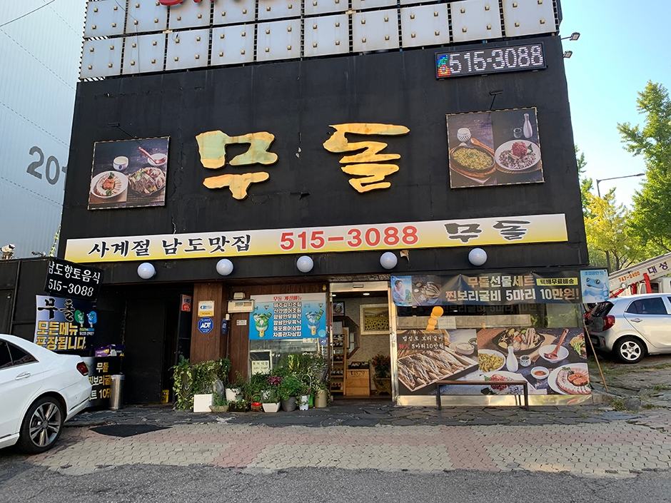 무돌은 지하철 7호선, 수인 분당선 강남구청역 3-1번 출구 부근에 있다. 매장이 있는 상가건물에 자체 주차장(발레파킹 서비스 가능) 있어 방문 시 자동차로 이용하기 편리하다. 이곳은 남도음식 전문점이다. 제철 해산물과 생선요리를 전문으로 하는 곳으로 유명하다. 매장 내부는 넓은 홀에 인원별 다양한 테이블 구성과 개별 룸까지 있어 단체 행사나 가족 모임에도 적당하다. 대표 메뉴는 병어조림, 한우육전, 갈낙전복찜, 한우육낙이 있다. 이외 메뉴로 홍어삼합, 무안 산낙지, 보리굴비, 잡어세꼬시가 많이 나간다. 주변에 압구정카페골목, 압구정 로데오거리, 청담동 거리가 있어 둘러보기 좋다.