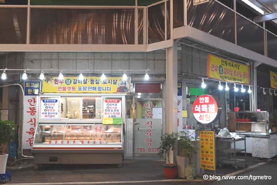 대구식육식당은 경상북도 안동시 풍산읍 상리리, 안동한우불고기타운 내에 있는 고기 요리식당이다. 여러 TV 프로그램에 소개된 맛집으로 주인이 직접 축사를 찾아가 소를 골라 도축하는 방식으로 고기의 신선도를 유지한다. 대표 메뉴는 한우로 요리한 소불고기이다. 그 외에도 등심, 육회, 뭉티기, 차돌박이가 있고, 삼겹살, 목살, 돼지주물럭 등 돼지고기도 맛볼 수 있다. 양이 푸짐하고 가성비가 좋아 모임이나 단체 회식을 하기에 좋은 곳이다. 서안동IC에서 가깝고, 인근에 안동하회마을, 안동병산서원이 있다.