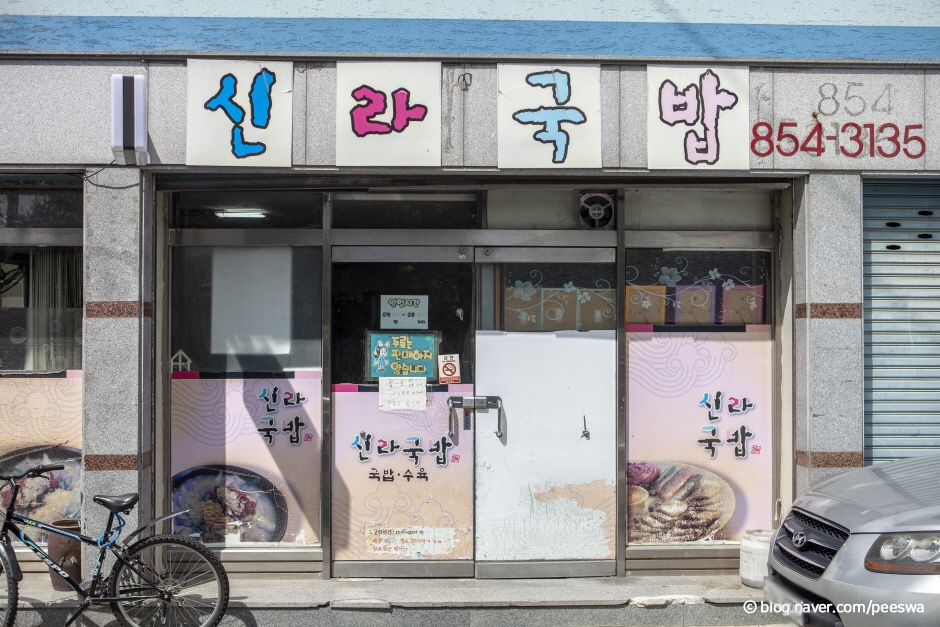 신라국밥은 경상북도 안동시 태화동에 있는 국밥과 수육 전문점이다. 세월의 흔적이 고스란히 엿볼 수 있는 노포지만 국밥과 수육 맛집으로 유명하다. 대표 메뉴는 고추, 마늘, 김치, 깍두기, 쌈장, 새우젓 등이 함께 나오는 돼지고기국밥이다. 이 밖에 내장국밥, 순대국밥, 수육 정식, 수육 등도 인기가 많다. 돼지고기와 쌀, 배추와 고춧가루까지 모두 국내산만 고집해서 믿을 만하다. 서안동 IC에서 가깝고, 주변에 안동문화관광단지, 안동레이크골프클럽이 있다.