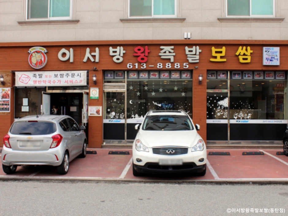 이서방왕족발보쌈(동탄점)은 경기도 화성시 반송동에 있는 족발과 보쌈 전문점이다. 대표 메뉴는 보쌈, 냉채족발, 불족발, 마늘보쌈, 빙수족발 등이 있다. 족발은 부드러운 식감의 따뜻한 것과 쫄깃한 식감의 식은 것 중 고를 수 있고 불족발은 맵기를 상, 중, 하로 원하는 입맛대로 주문할 수 있다. 보쌈 역시 삼겹살과 살코기 중 원하는 부위를 선택할 수 있지만 별다른 요청이 없으면 반반으로 제공한다. 가능하면 고객이 원하는 입맛대로 맞추고자 노력하는 식당으로 단체 회식의 경우 영업시간이 아니어도 협의 예약이 가능하다. 메인 메뉴를 주문하면 막국수를 서비스로 제공하고 포장 고객에게는 할인 서비스를 제공한다. 주차는 매장 앞 주차장을 이용할 수 있어 편리하다.