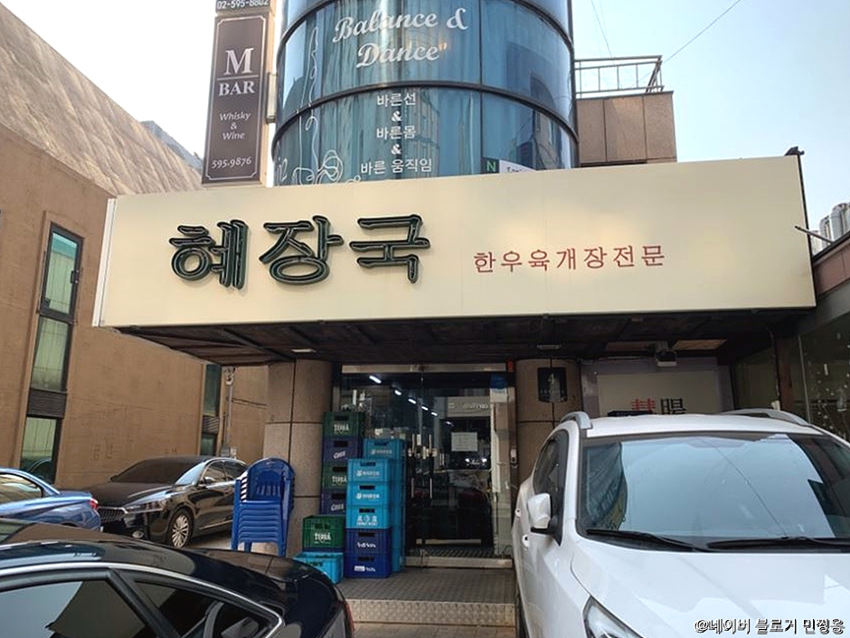 혜장국은 9호선과 신분당선 신논현역 9번 출구 서초4동주민센터 인근에 있다. 혜장국의 혜는 시원스럽다는 뜻으로 이곳은 한우육개장 전문점으로 서울에서 대구식 육개장을 맛볼 수 있는 곳이다. 매장 안에 테이블은 9개가 전부다. 매장 앞 주차장이 있고 발레파킹 서비스(유료)도 가능하다. 이곳의 메뉴는 한우 육개장, 한우 차돌 육개장, 한우 육회비빔밥, 한우 수육(대, 중, 소), 한우 차돌박이 수육, 한우 전골, 송로버섯 한우 육회, 한우 전골(중, 대)이 있다. 특식으로 한우 아롱사태 육전과 한우 뭉티기도 있다. 포장과 전국 택배도 가능하다. 매장 인근에 역삼공원, 명달공원이 있어 식사 후 가벼운 산책하기에 좋다.