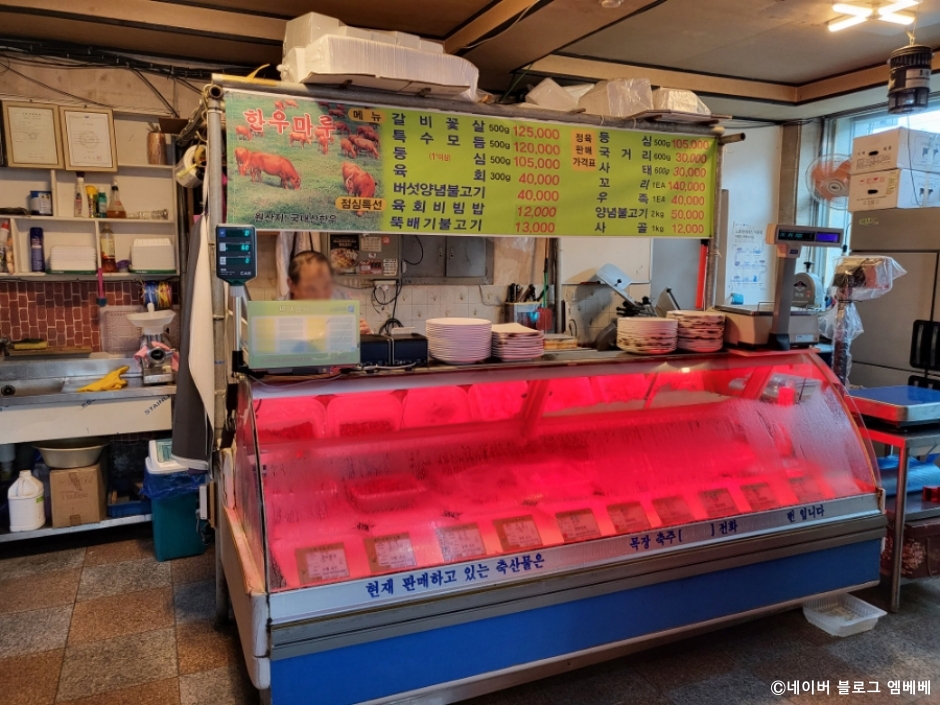 - 취급메뉴 : 특수모듬, 등심, 육회, 버섯양념불고기 등
