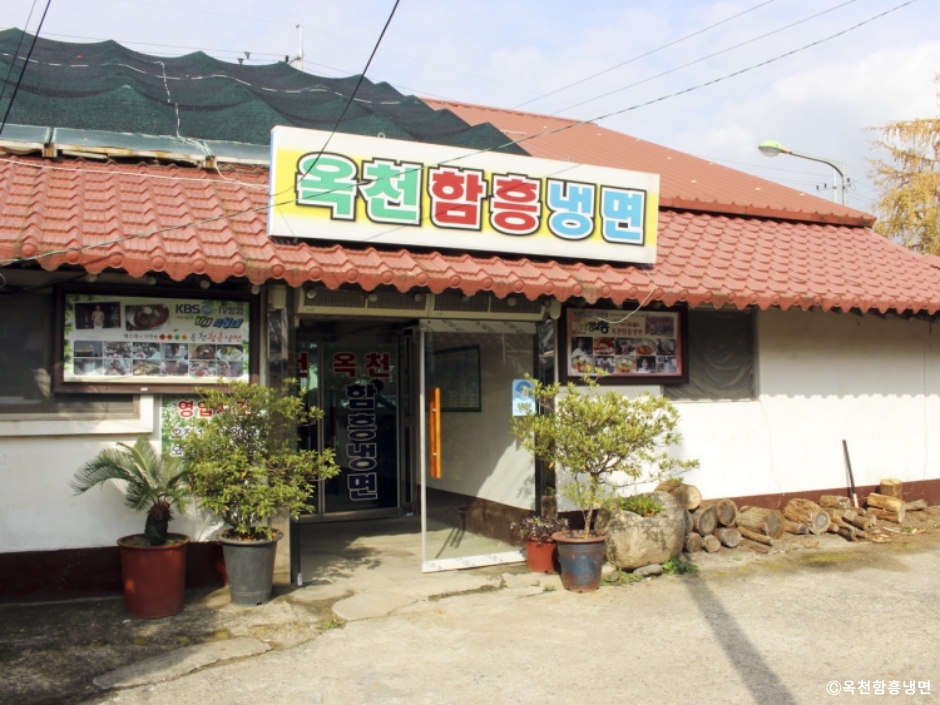 경기도 양평 옥천에 있는 옥천함흥냉면은 한옥을 개조한 건물로 소박한 가정집의 모습을 지니고 있지만 규모가 있는 대형 식당이다. 자리에 앉으면 주문도 하기 전에 육수 주전자를 가져다준다. 냉면의 밑반찬은 무절임이 전부이다. 냉면과 함께 수육과 완자도 맛볼 수 있다. 두 가지를 모두 먹고 싶다면 반반 메뉴를 주문하면 된다. 회냉면은 가자미회를 무친 것으로 오돌오돌하고 쫄깃한 맛이 일품이다. 회를 더 먹고 싶다면 회무침을 곁들임 메뉴로 주문할 수도 있다. 내부엔 방도 있고, 입식 테이블 좌석도 있어 편한 곳을 선택하면 된다. 대형주차장이 앞뒤로 있어 편하게 주차할 수 있다.
