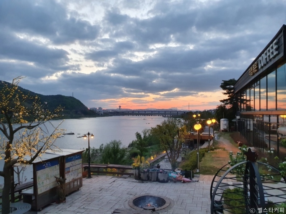 경기도 남양주시에 있는 한강뷰 브런치 카페다. 탁 트인 아름다운 한강뷰를 바라보며 힐링할 수 있는 곳으로 유명하다. 큐그레이더가 엄선한 원두로 직접 로스팅하며, 전문 바리스타의 커피와 신선한 재료로 선보이는 피자와 샐러드, 베이커리를 즐길 수 있다. 평범한 카페처럼 구성된 일반 테이블 좌석은 물론, 룸 카페나 만화방을 연상시키는 독립된 공간으로 꾸며져 있는 좌석도 있다. 내부가 넓고 층고가 높아서 쾌적하고 편안한 분위기에서 음료와 브런치를 맛볼 수 있다. 반짝이는 네온사인과 여러 가지 장식 및 소품들이 눈길을 사로잡는 뷰 맛집 감성 카페다.