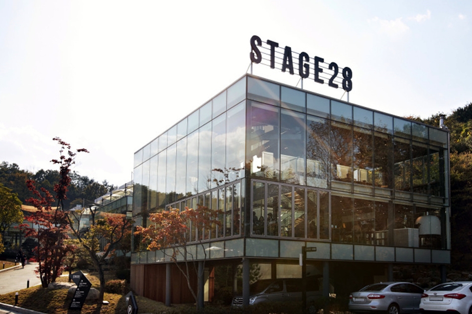 스테이지28은 강남대로와 올림픽대로 구리 암사대교 방향 인근에 있다. 대중교통으로 이용하기에는 불편하고 주차시설이 잘되어 있어 자동차를 이용하는 것이 편리하다. 이곳은 이탈리아 음식점이다. 시내 중심지에서 10여 분 거리에 자연 속 서울의 또 다른 모습을 볼 수 있는 곳이다. 입구에 태권브이가 있는 것이 인상적이다. 스테이지28웁시데이지라는 반려견 카페도 같이 운영 중이다. 매장 안은 바 테이블 공간도 있고 통창으로 한강을 조망할 수 있는 창가 2, 4인용 테이블이 놓여 있고 한층 더 올라가면 공유 테이블과 단체석이 있다. 이 공간은 브런치 카페처럼 운영되고 있고 메뉴는 디저트와 차 종류, 식사류는 파스타와 샐러드, 피자 종류가 있다. 가족, 연인이 데이트하기 좋은 장소이다. 식당 인근에 브이센타, 두레근린공원, 한강둔치꽃단지 등이 있어 연계 관광을 즐길 수 있다.