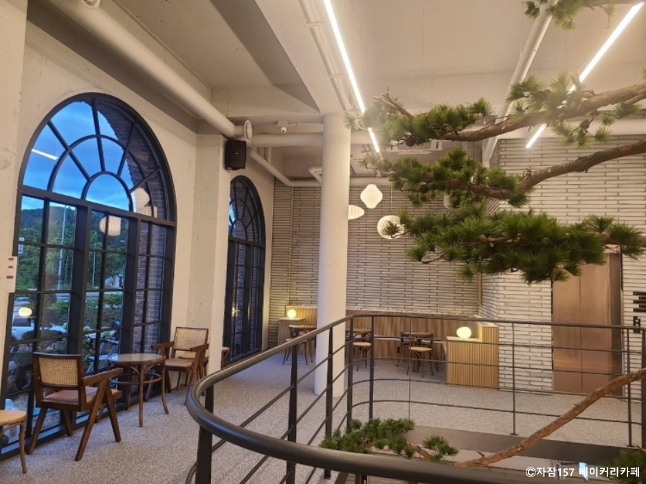 자잠 157은 가평군 설악면에 있는 대형 베이커리 카페다. 카페 뒤쪽으로 북한강 물줄기의 호수 뷰를 감상할 수 있고 앞쪽은 신성봉이 있어 사계의 변화와 아름다움을 즐길 수 있다. 주변에 이어지는 산책길을 따라가면 요새 같은 대규모 별장이 나란히 나와 마치 유럽의 강가를 걷는 것 같은 느낌을 준다. 건물은 층마다 인테리어를 달리해서 분위기도 다르고 볼거리도 많다. 커피는 모두 스페셜티 커피 원두를 사용하고 있다. 명장 파티쉐가 만드는 정통 프랑스식 디저트 빵들은 인기가 좋아 조기 마감될 수도 있다. 주차장은 70여 대를 주차할 만큼 널찍하다. 주변에 남이섬, 자라섬, 아침고요수목원 등의 관광지가 많아 연계 관광이 수월하다.