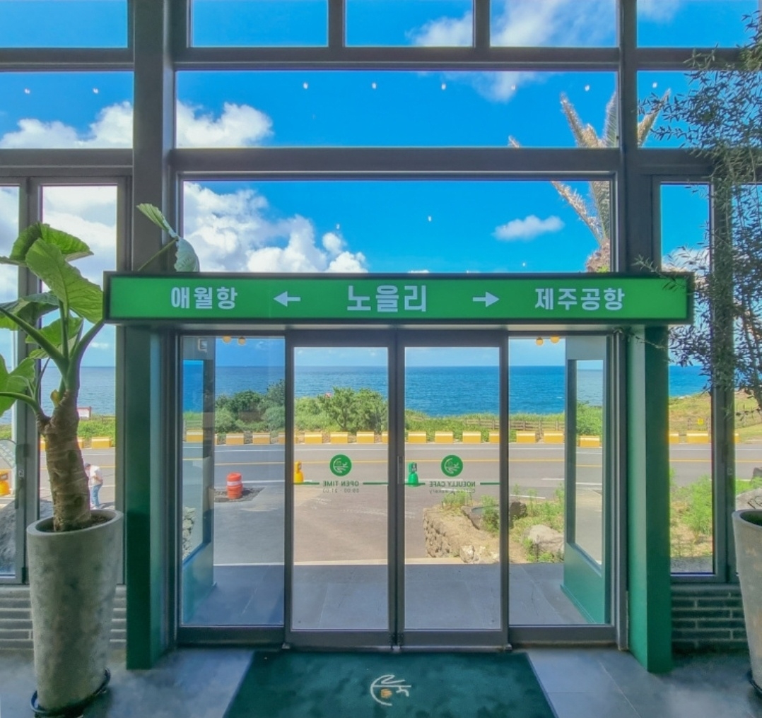 노을리는 제주시 애월읍 구엄리에 있는 디저트 카페다. 입구는 버스 정거장처럼 꾸며 졌지만, 실내는 유리온실처럼 꾸며 열대식물과 바다 뷰를 함께 즐길 수 있다. 2층은 루프탑 카페, 3층은 하늘정원으로 꾸며 있어 1층을 제외한 공간은 노키즈존으로 운영한다. 대표메뉴는 연탄빵으로 흑연탄 모양의 찹쌀 빵 안에 딸기잼이 들어 있다. 그 외에 다양한 음료와 커피, 스콘과 쿠키 등이 있다. 바다를 향해 의자와 테이블을 배치해 제주 바다와 노을을 바로 앞에서 감상할 수 있다, 유채꽃, 수국, 해바라기, 코스모스, 메밀꽃 등 사계절 내내 꽃을 감상할 수 있는 것도 노을리의 장점이다, 근처 여행지로 구엄리 돌염전, 구엄포구가 있다.