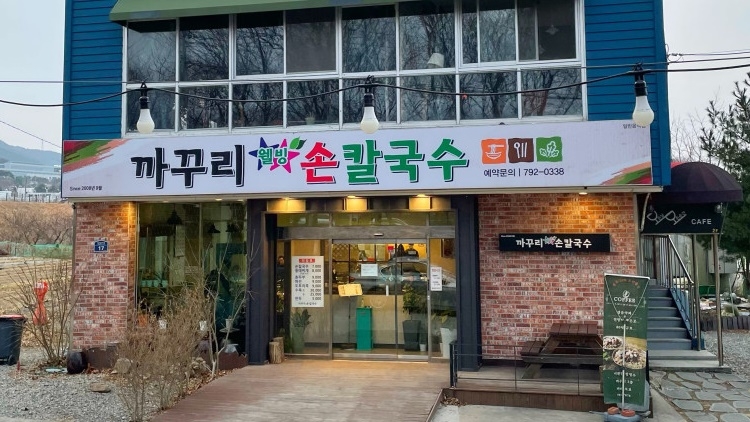 까꾸리웰빙손칼국수는 대구광역시 수성구 대흥동에 있다. 세련된 느낌의 외관과 차분한 분위기의 인테리어가 돋보인다. 내부에는 단체석이 마련되어 있어 각종 모임을 하기 좋다. 대표 메뉴는 콩, 녹차, 현미, 녹두, 쑥 등을 재료로 활용해 조리한 손칼국수다. 육수는 매일 새벽 5시부터 우려내고, 면 반죽부터 제면까지 어느 것 하나 손으로 하지 않는 게 없다. 손칼국수 외에 파전, 동태찌개, 촌두부, 도토리묵, 수육, 만두 등을 맛볼 수 있다. 동대구IC에서 가깝고, 인근에 대구삼성라이온즈파크, 대구스타디움이 있다.
