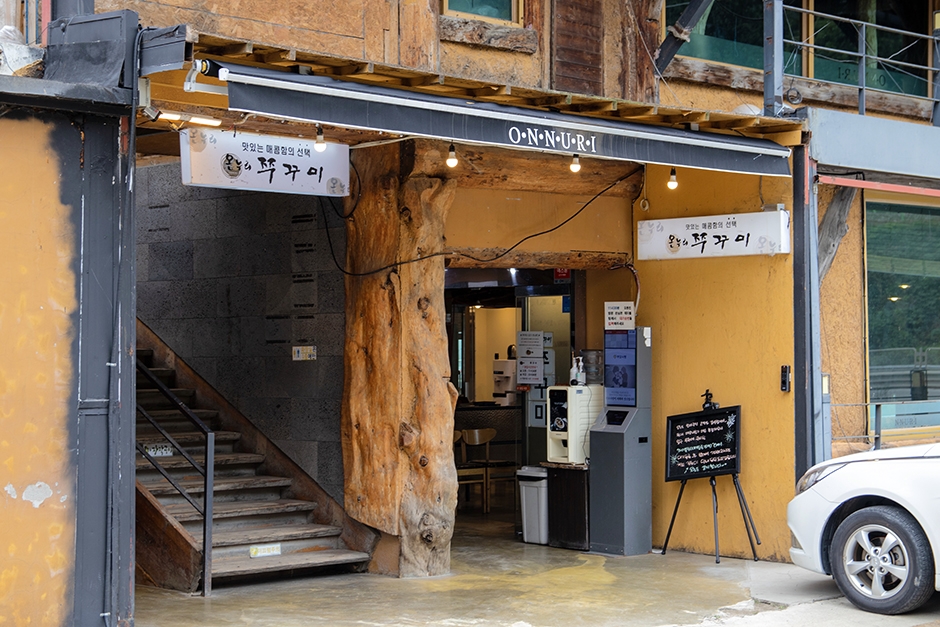 - 취급메뉴 : 철판쭈꾸미셋트, 철판쭈삼겹, 코다리냉면, 한우직화불고기, 크림왕새우, 치즈퐁듀, 도토리전, 도토리묵사발, 온누리샐러드 등