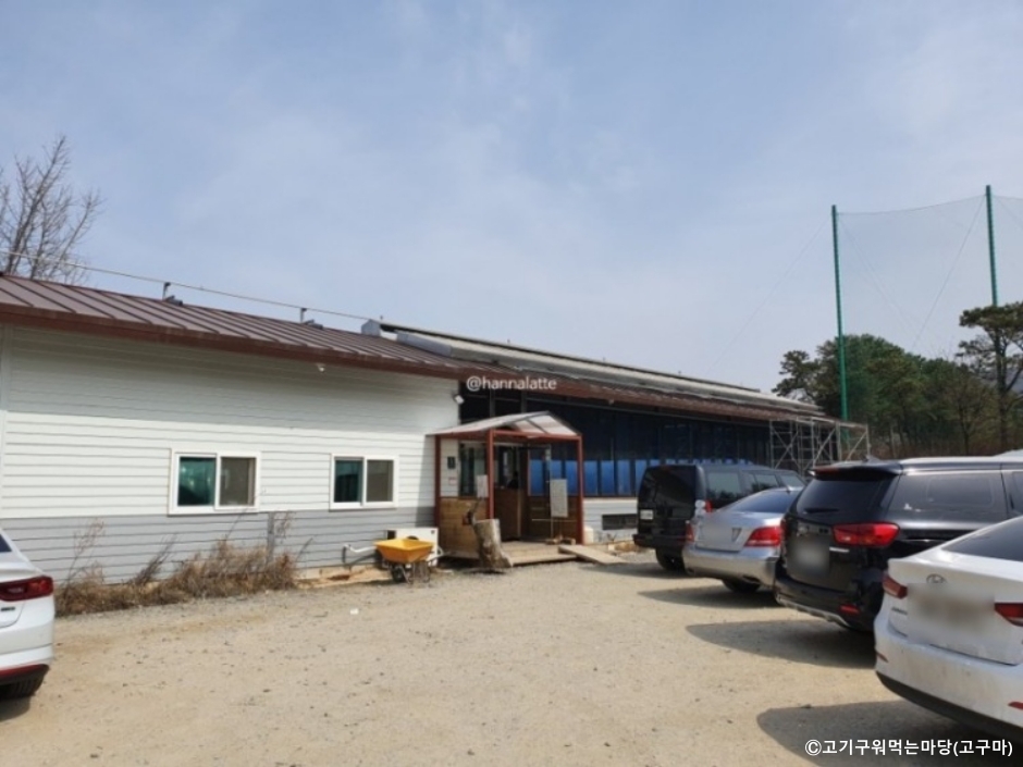 고기구워먹는마당(고구마)는 용인시 양지에 있는 가성비 좋은 고깃집이다. 야외에 있는 정육식당으로 실내 좌석도 없고 사이드 메뉴도 없이 오로지 소고기 등심, 살치살, 채끝살만 판매하는 집이다. 외진 곳에 있어 누가 찾아올까 싶지만 이미 소문이 자자한 고기 맛집이다. 사이드 메뉴는 고추, 상추, 마늘, 쌈장이 전부이고 밥을 먹고 싶으면 전자레인지에 즉석밥을 데워 먹어야 하고, 후식은 라면이 전부다. 반면에 고기는 한 점 한 점 정성껏 맛있게 구워 준다. 식당이라기보다 넓은 캠핑장이나 글램핑장에서 고기를 먹는 느낌이다. 입구에 들어서서 맘에 드는 고기를 골라 결제한 후, 먹고 나서 나갈 때 상차림비용, 라면 혹은 즉석밥 비용을 결제하는 시스템이다. 공간이 넓어 주차는 편하게 할 수 있다. 양지파인리조트, 지산포레스트리조트에서 가깝다.
