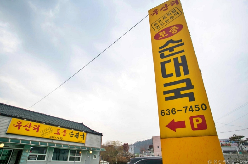 유산리토종순대국은 경기도 이천시 호법면에 있는 순댓국 전문점이다. 음식점 내부는 소박하며 편안한 분위기다. 유산리토종순대국은 우리가 보통 아는 순댓국과 다르게 선지 순댓국이다. 대표 메뉴인 시골순대국은 선지와 내장 고기, 곱창, 고기가 푸짐하게 들어가 있다. 선지가 들어가므로 순댓국의 색이 팥색이 난다. 국물은 진하고 시원한 맛이다. 시래기도 함께 들어가 있어 구수한 맛과 향을 더해준다. 곰탕 순대국은 뽀얗게 하얀 국물의 순딧국이다. 뼈해장국도 손님들이 많이 찾는데 뼈에 붙은 고기도 많고 국물이 진하고 시원하다. 유산리토종순대국의 순대는 손으로 직접 만드는 토종 순대이다. 선지와 내용물이 잘 배합되어서 구수한 맛에 식감도 부드럽다. 아침 일찍 영업을 시작하므로 골프장을 찾는 손님들과 아침 식사를 하기 위해 찾는 손님들도 많다. 3km 거리에 롯데 프리미엄아울렛이 있고, 4km 거리에 경기도자미술관, 안흥지, 설봉온천랜드, 복하천수변공원, 5km 거리에 복합문화공간인 더이진이 있다.