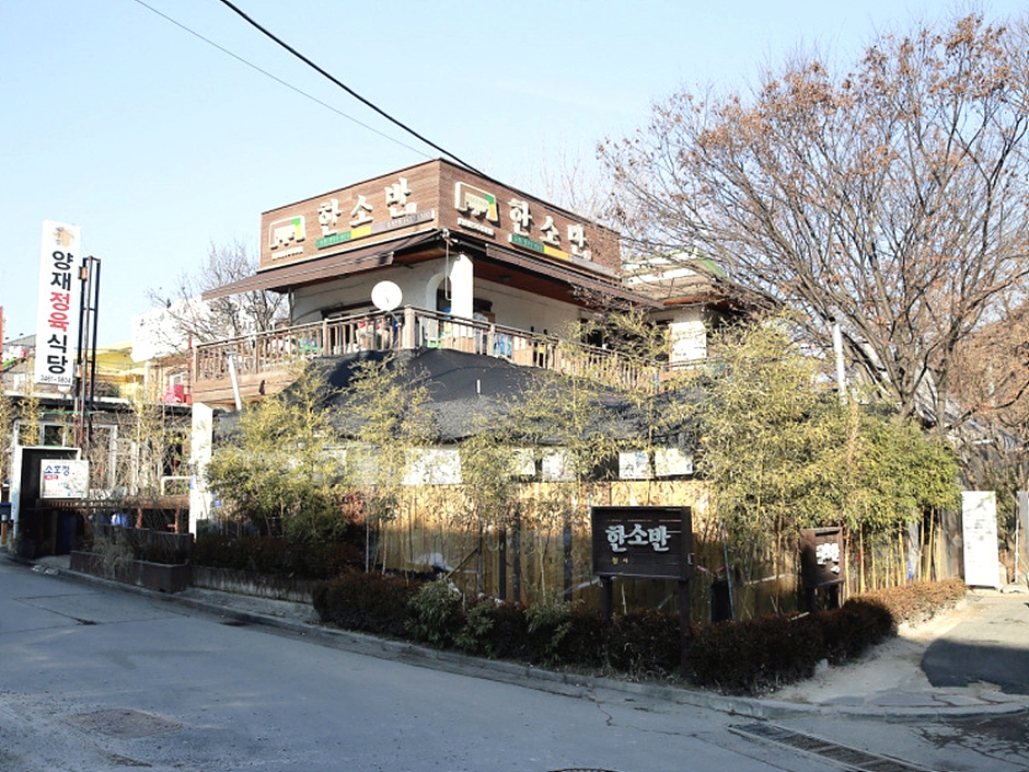 한소반 청계산점은 신분당선 청계산입구역 2번 출구, 청계산 원터길 등산로 맞은 편에 있다. 매장 앞에 주차장이 있어 주차하기 편리하다. 점심 식사 시간대엔 손님이 많아 기다릴 수 있으며 원격 줄 서기 앱을 이용할 수 있다. 국내산 모둠보쌈, 도토리 해물파전, 칼국수, 죽을 모두 먹을 수 있는 한소반 모둠보쌈 세트가 주메뉴이며 단품으로도 주문할 수 있다. 그 외, 왕새우 튀김, 홍어회도 있고, 별도로 한소반 보쌈 알뜰 포장 메뉴도 있다. 청계산 산행 전후에 이곳을 찾는 등산객들도 많다. 인근에 서울과 경기도를 아우르는 청계산 원터길, 서울대공원, 렛츠런파크 서울 등이 있어 연계 관광을 할 수 있다.