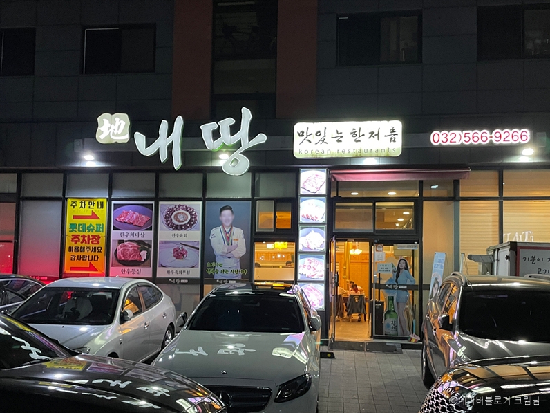 내땅은 인천 서구 청라국제도시 도담초등학교 포리공원 앞 먹자골목에 있다. 주차는 식당 바로 앞에 할 수 있다. 이 음식점의 대표는 다양한 요리업계 수상 이력을 소유한 분이다. 내부 테이블은 좌식, 입식, 테라스 테이블, 개별 칸막이 룸 등으로 구성되어 있다. 이곳의 대표 메뉴는 한우 안창살 150g, 한우 특수모듬 150g이다. 밑반찬은 겉절이, 오이지, 된장찌개 등 10가지가 제공된다. 그 외 메뉴는 한우 치마살 150g, 한우 살치살 150g, 한우 안심 150g, 한우 등심 150g, 한우 육사시미 150g, 한우육회 150g이 있다. 식당은 농림축산식품부 제공 안심식당이다. 식당 인근에는 청라중앙호수공원, 정서진, 경인아라뱃길, 영화관, 쇼핑센터 등이 있어 연계 관광을 할 수 있다.