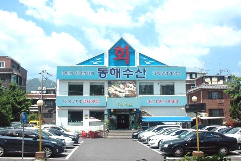 동해수산은 서울특별시 도봉구 방학동에 있는 생선회 전문점이다. 대중교통을 이용한다면 지하철 1호선 방학역 3번 출구에서 가깝다. 건물 1. 2층을 모두 사용하기 때문에 테이블이 넉넉하고 식당 앞 주차공간이 넓다. 발레파킹 서비스도 받을 수 있다. 매장은 테이블과 좌석 사이가 넓어 가족모임이나 단체 회식에 적합하다. 장애인 편의시설도 갖추고 있어 불편을 최소화했다. 대표 메뉴는 각종 활어회 코스요리와 회 정식이지만 회초밥, 회덮밥, 물회, 산낙지 등 신선한 생선과 해산물이 많다. 랍스터, 대게, 킹크랩 찜 요리도 인기 메뉴다.