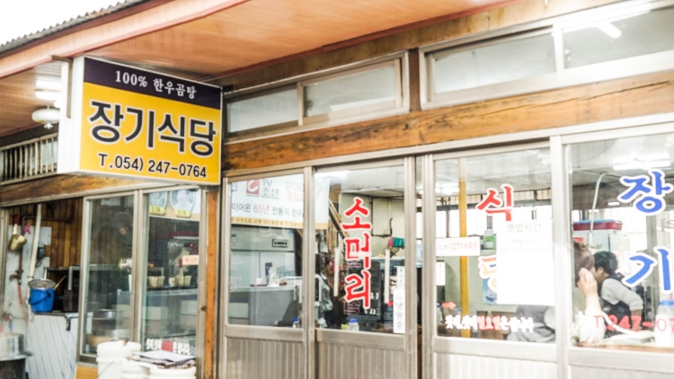 장기식당은 경상북도 포항시 북구 죽도동, 죽도시장 안에 있다. 3대에 걸쳐 70년 넘게 영업해온 노포로 토렴식 소머리 곰탕으로 유명하다. TV프로그램 수요미식회와 생방송 투데이 등 여러 방송에 소개되었다. 대표 메뉴는 곰탕이며, 수육도 별미다. 밑반찬으로 깍두기, 양파장, 풋고추, 쌈장이 나오고 수육을 주문하면 곰탕 국물이 서비스로 나온다. 오전 8시에 문을 열기 때문에 든든한 아침식사로도 좋다. 포항 IC에서 가깝고, 인근에 영일대해수욕장, 환호공원이 있어 연계 여행에 나서기 수월하다.