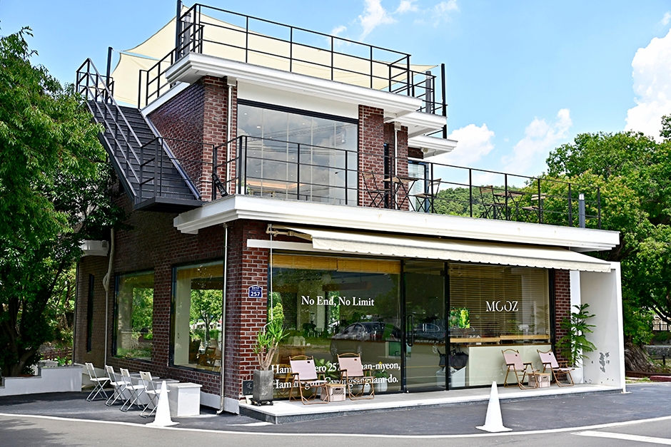 경남 카페 무진은 한 폭의 그림 같은 무진정의 풍경을 한눈에 담을 수 있는 카페이다. 일반 주택을 개조한 건물로 1층, 2층, 루프탑으로 되어 있고 1층에는 야외 테라스도 있다. 카페 무진에서 바라보는 무진정은 경상남도 지정 유형문화재 제158호로 조선시대 때 무진 조삼선생이 여생을 보내기 위해 지은 정자다. 연못가가 보이는 건물 외벽을 통창으로 개조하여 1, 2층 모두 개방감 있고, 멋진 풍경을 볼 수 있다. 다만 카페에 테이블이 많지 않아 주말에는 순서를 기다려야 하는 경우가 많다. 카페 1층 오픈 주방에서는 쿠키, 휘낭시에, 마들렌, 케이크, 샌드위치를 직접 만들어 판매하고 있다. 쿠키 맛집으로도 알려져 음료와 함께 찾는 이가 많다. 카페 무진 바로 앞에 무진정 산책길이 있어 커피를 마신 후 둘러보는 시간을 가져보는 것도 좋다. 자가용 이용 시에는 비용을 내더라도 함안대로 273-16에 있는 공영주차장을 이용하면 편하다.